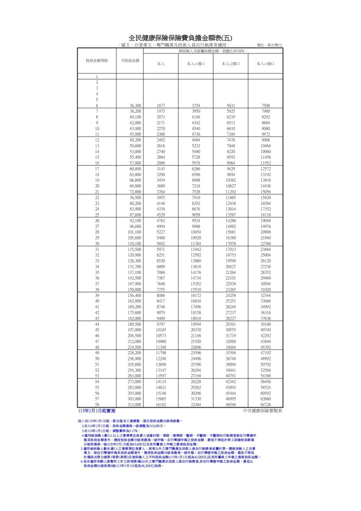 (員工5人以下在42,000級距要繳$2,171、5人以上在45,800要繳$2,368,且不能低於員工級距)